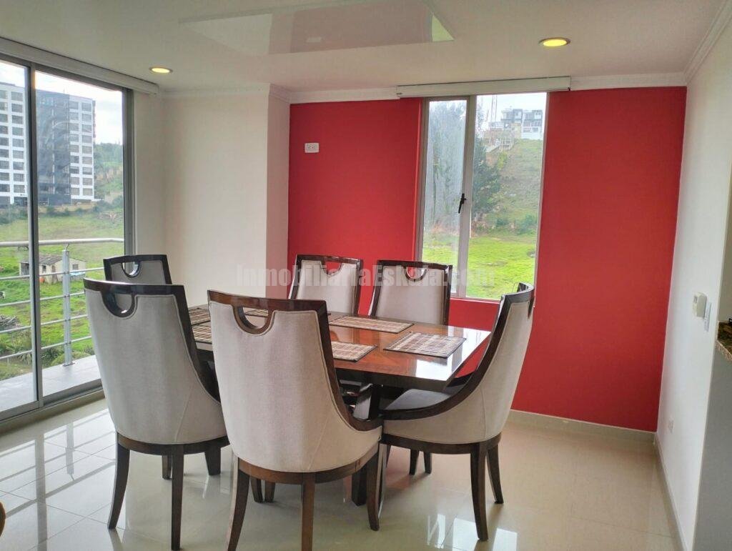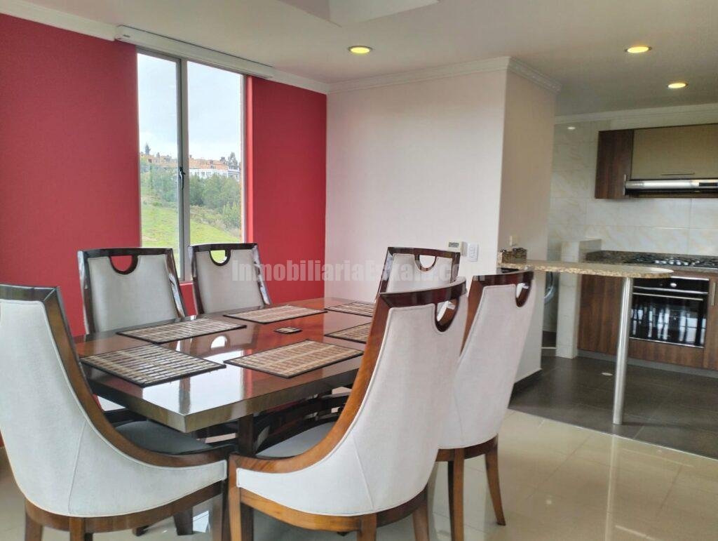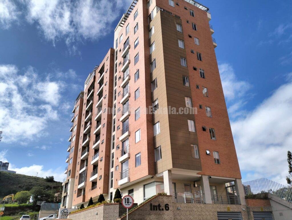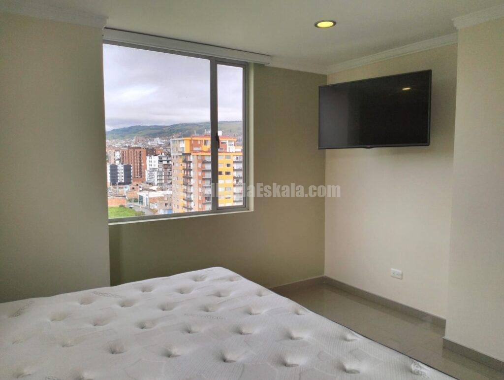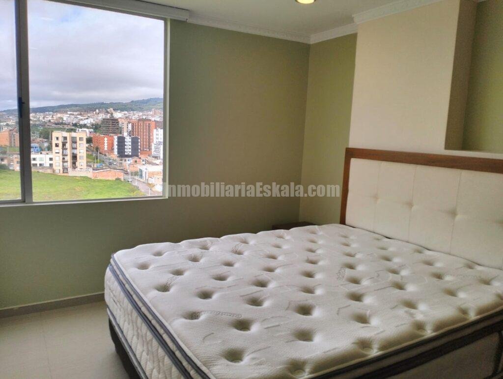 Apartamento localizado al Norte de la ciudad de Tunja diagonal al centro comercial Unicentro, El apartamento queda localizado en el piso 9, cuenta con una excelente iluminación y ventilación natural, su disposición y ubicación le permite el ingreso de sol en horas de la mañana y horas de la tarde lo que ayuda mantener una temperatura de confort en su interior. El apartamento cuenta sala – comedor, cocina integral, área de ropas, tres habitaciones la principal con baño privado, baño auxiliar y baño general, estudio, el apartamento cuenta con parqueadero doble y deposito.